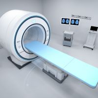 During an MRI scan, the patient lies down on a table that slides into a tunnel-like machine.